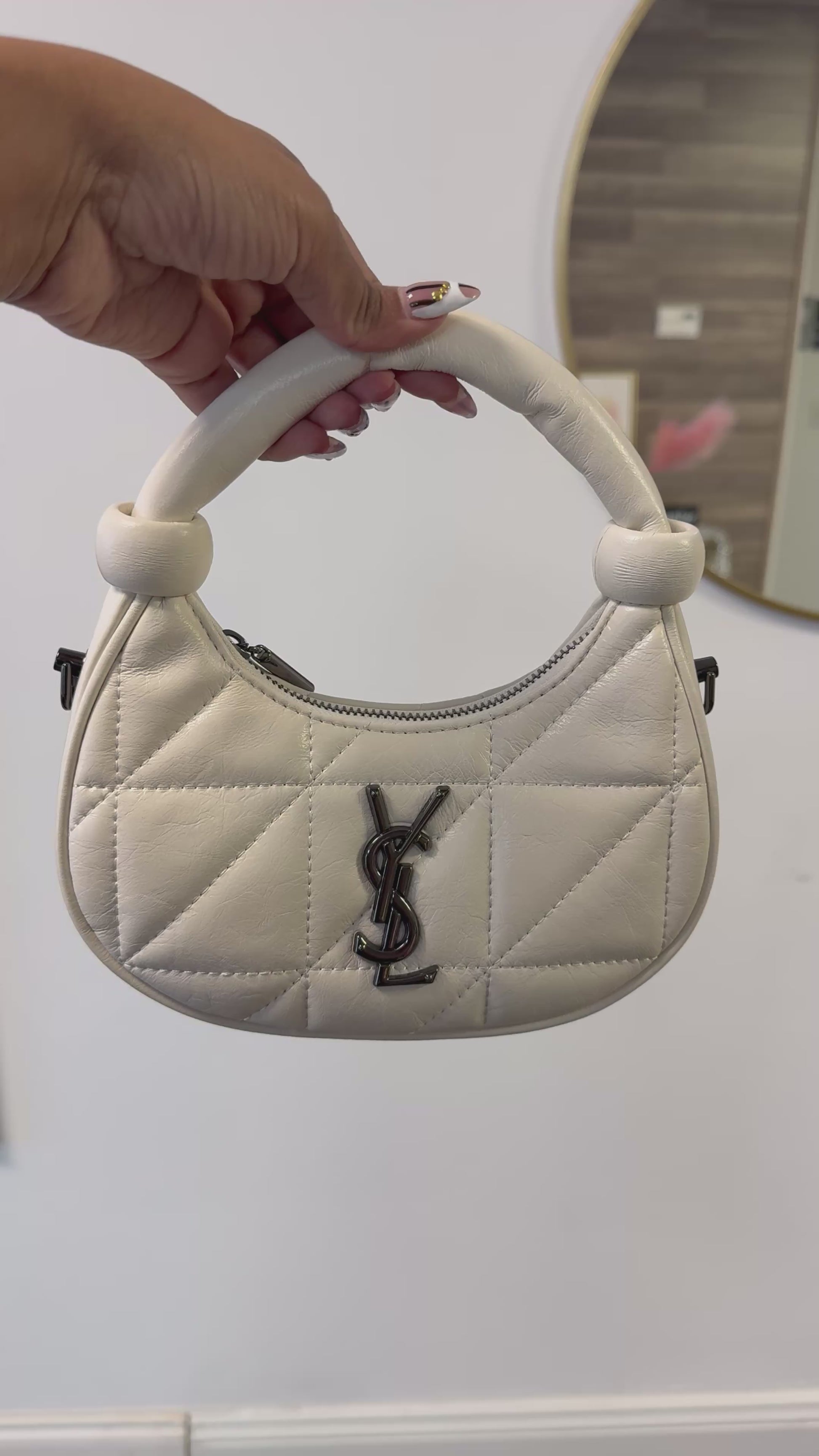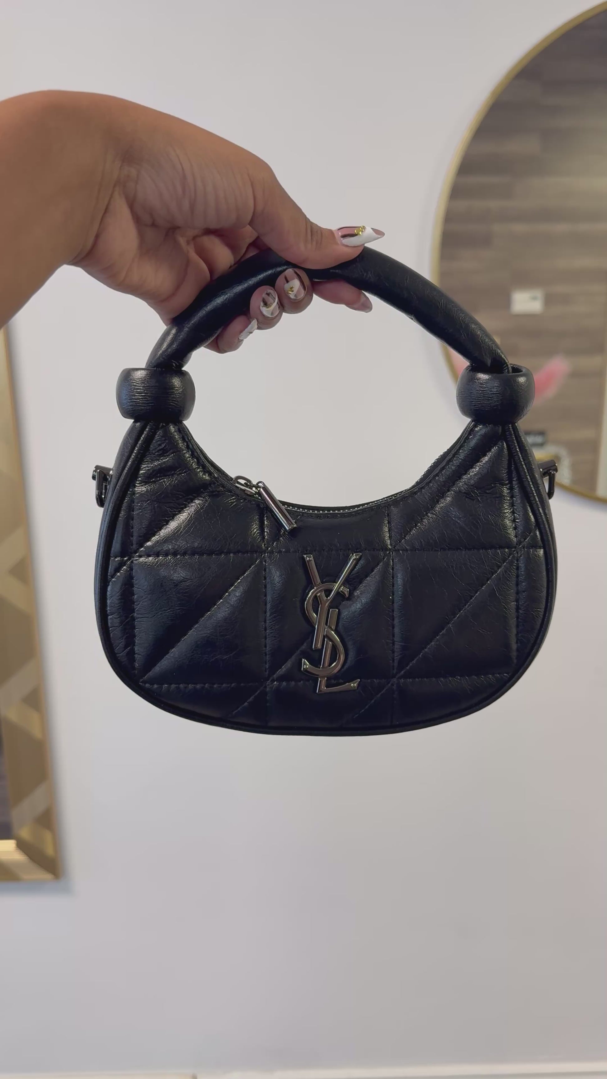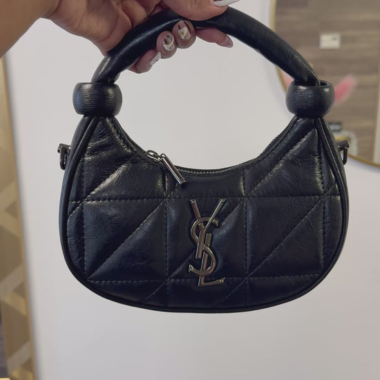 Introducing the chic and compact Mini YSL-Inspired Bag, designed for effortless style and everyday elegance. This mini shoulder bag features luxurious quilted stitching, a structured crescent silhouette, and a bold metal YSL-style logo on the front—perfect for adding a touch of designer glamour to any outfit.